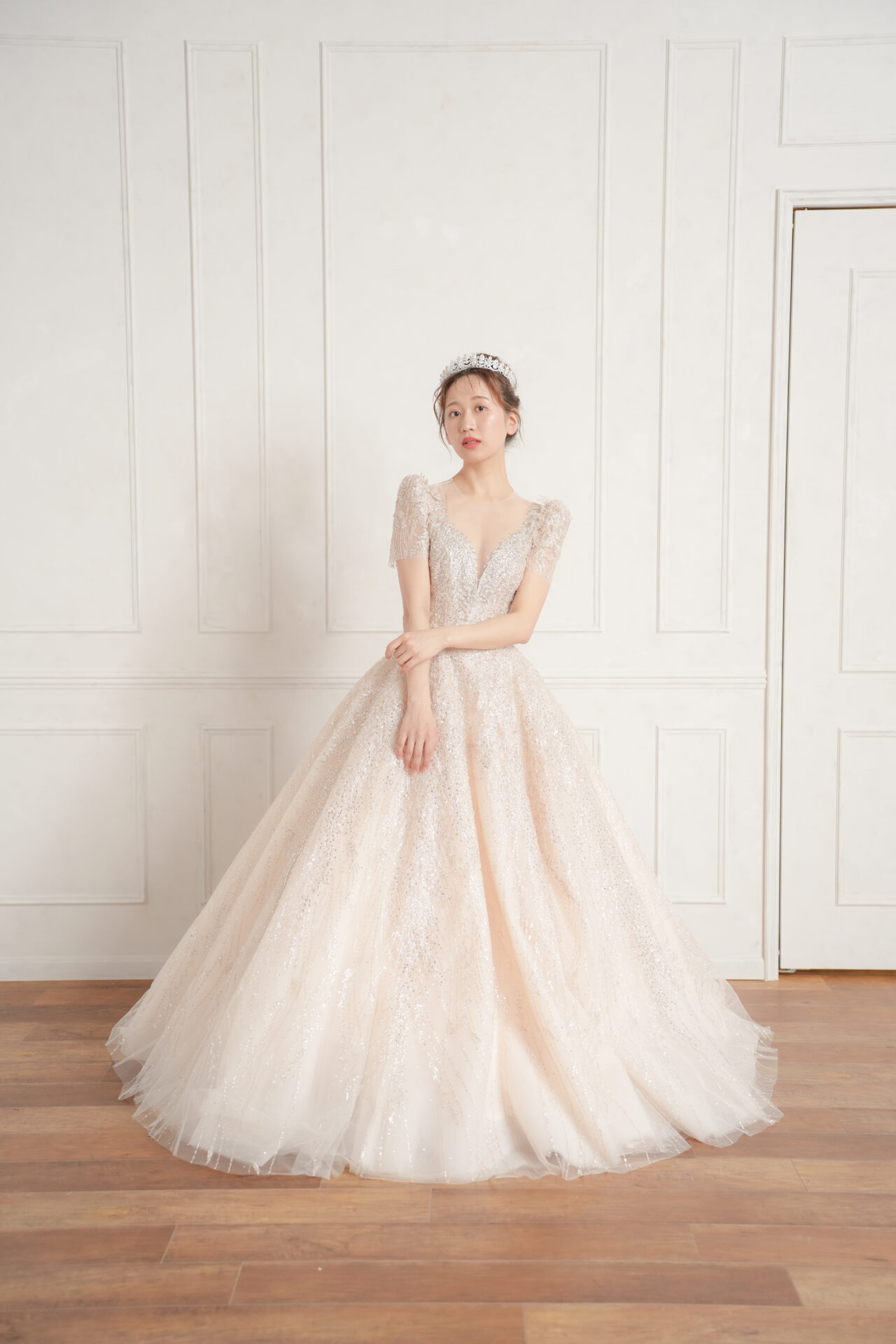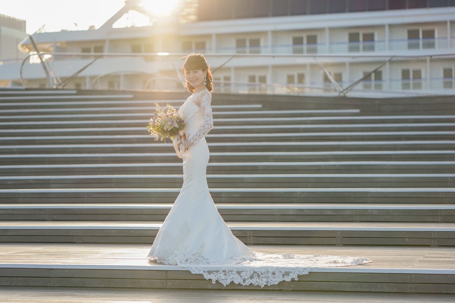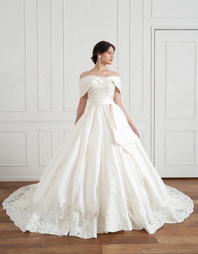 Topics&News トピックス&ニュース Photo Wedding Momona.Yokohama,Kawasaki,Kamakura HOME > トピックス&ニュース > 上品にも可憐にも。ドレスの印象を決める袖デザインの種類と魅力について 2025.12.26 update 2025.12.22 婚礼衣装・ウェディングドレス・着物 #ドレスで洋装フォトウェディング 上品にも可憐にも。ドレスの印象を決める袖デザインの種類と魅力について ウェディングドレスを選ぶとき、多くの花嫁さまがまず注目するのはシルエットやレース、装飾などのディテールかもしれません。 しかし、実は“袖のデザイン”こそがドレス全体の印象を大きく左右する大切な要素のひとつです。 袖の長さや形、素材によって、同じドレスでも印象はがらりと変わります。 上品でクラシカルに見せたいとき、ナチュラルで柔らかな雰囲気を出したいとき、あるいはモードで個性的に仕上げたいときなど、そのすべてを叶える鍵は袖のデザインにあります。 今回は、花嫁さまに人気の袖の種類とその特徴、体型カバーや季節別の選び方、そしてトレンドのアレンジ袖までをご紹介します。 自分らしい一着を見つけるためのヒントとして、ぜひ参考になさってください。 目次花嫁さまを彩る、ウェディングドレスの袖デザインロングスリーブ(七分袖・長袖):気品をまとうクラシカルな佇まいショートスリーブ(半袖):軽やかで親しみやすい万能シルエットオフショルダー:デコルテを美しく魅せる華やぎのラインキャップスリーブ:そっと肩を包む、清楚なアクセントパフスリーブ:ふんわり可憐なクラシックシルエットフレンチスリーブ:軽やかさと上品さを添える繊細なデザイン美しさを整える、スリーブラインの選び方Aラインドレスプリンセスラインマーメイドライン体型を美しく、季節を心地よく。袖で叶える選び方二の腕を自然にカバーしてくれる、軽やかなスリーブ肩幅をスッキリ見せ、上半身を整えるデザイン季節とロケーションに寄り添う、袖のコーディネート袖ありウェディングドレスの魅力露出を抑えて上品にクラシカルで気品ある雰囲気に写真映えする美しいバランス袖ありのウェディングドレスを選ぶ際の注意点素材で魅せる、旬のアレンジスリーブチュール袖・オーガンジー袖ビショップスリーブ・リボンスリーブ2WAYスリーブ(取り外し可能タイプ)横浜・神奈川県のウェディングフォトならフォトウェディングモモナ 花嫁さまを彩る、ウェディングドレスの袖デザイン ウェディングドレスの印象を決める大切な要素のひとつが、「袖のデザイン」です。袖の形や長さ、素材によって、同じドレスでもまったく違う雰囲気になります。 ここでは、人気のある袖の種類をわかりやすくご紹介します。 Momonaが展開するドレス一覧はコチラ ロングスリーブ(七分袖・長袖):気品をまとうクラシカルな佇まい 腕全体を包み込むロングスリーブは、上品でクラシカルな印象を与えるデザイン。 チャペルや洋館ロケーションなど、格式あるシーンにも映えます。冬婚にもおすすめで、気品と落ち着きを演出したい花嫁さまにぴったりです。 ショートスリーブ(半袖):軽やかで親しみやすい万能シルエット 肩から腕の付け根あたりまでを覆うショートスリーブは、軽やかでナチュラルな印象を与える万能デザインです。露出は控えめにしつつも爽やかな雰囲気を演出でき、季節やロケーションを問わず合わせやすいのが魅力。 シンプルなシフォン袖なら柔らかく可憐な印象に、レース袖なら上品でクラシックな雰囲気に仕上がります。春夏のフォトウェディングはもちろん、カジュアルすぎず程よい華やかさを出したい花嫁さまにも人気のデザインです。 オフショルダー:デコルテを美しく魅せる華やぎのライン 肩を大胆に見せるオフショルダーは、女性らしさと華やかさを兼ね備えた定番デザイン。 デコルテを美しく見せることでロマンティックな印象に。アップヘアやボリュームアクセサリーを合わせれば、よりエレガントに仕上がります。 キャップスリーブ:そっと肩を包む、清楚なアクセント 肩を軽く覆う短い袖が特徴で、露出を抑えつつ清楚で上品な印象を与えます。ナチュラルなガーデンフォトや屋外撮影との相性も良く、優しい雰囲気を演出できます。 パフスリーブ:ふんわり可憐なクラシックシルエット ふんわりとしたフォルムが愛らしいパフスリーブは、可憐でクラシカルな印象に。ボリューム袖が腕まわりを華奢に見せ、レトロで柔らかな印象を引き出します。 フレンチスリーブ:軽やかさと上品さを添える繊細なデザイン 肩を少し覆うフレンチスリーブは、ナチュラルで涼しげな印象を与えます。上品で可憐な雰囲気に仕上がるため、春夏の屋外フォトにもぴったりです。 美しさを整える、スリーブラインの選び方 袖のデザインを選ぶときは、ドレス全体のシルエットとのバランスを意識することが大切です。 「スリーブライン」とは、肩から腕にかけてのラインのことを指します。このラインを意識することで、体型をより美しく見