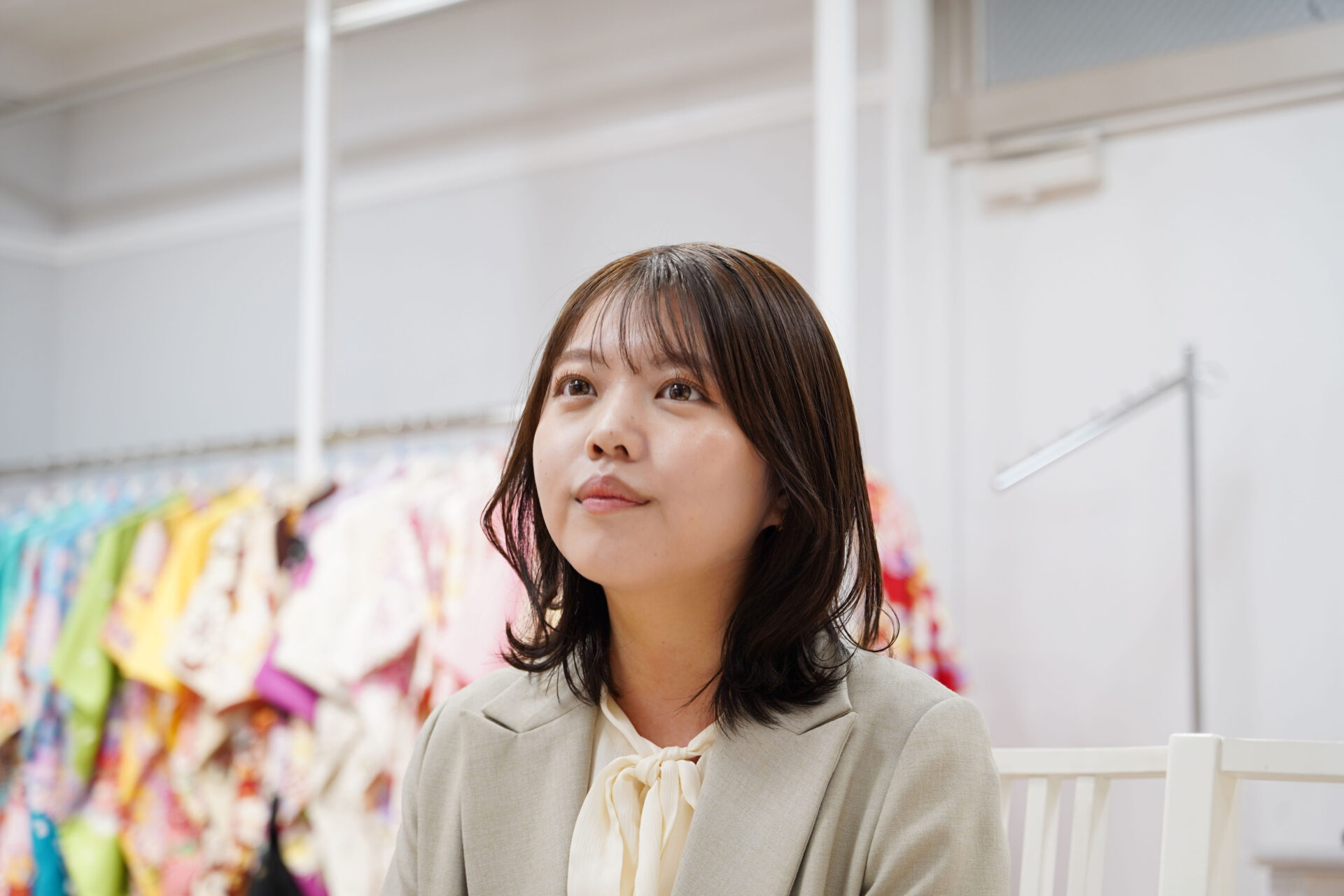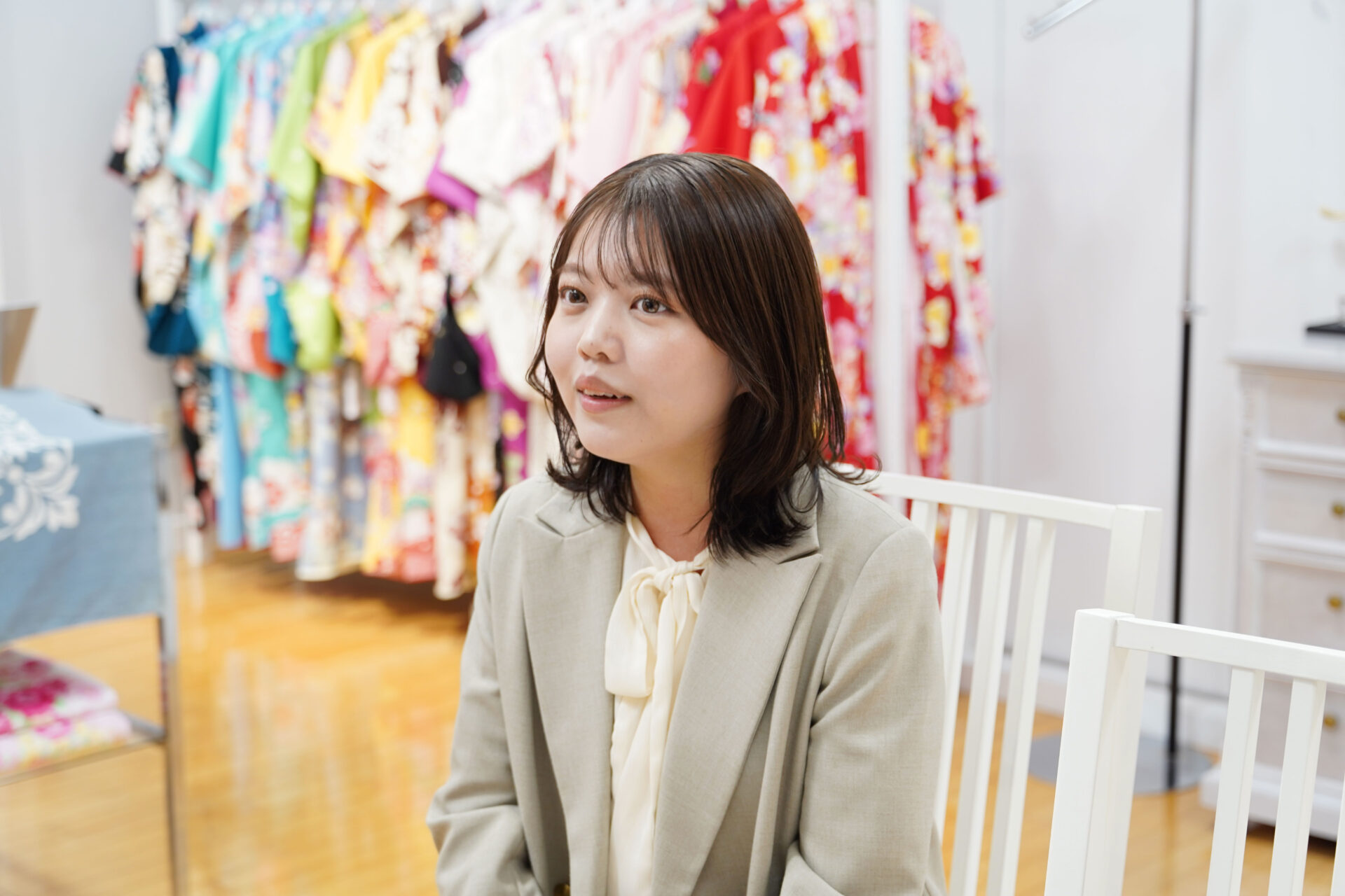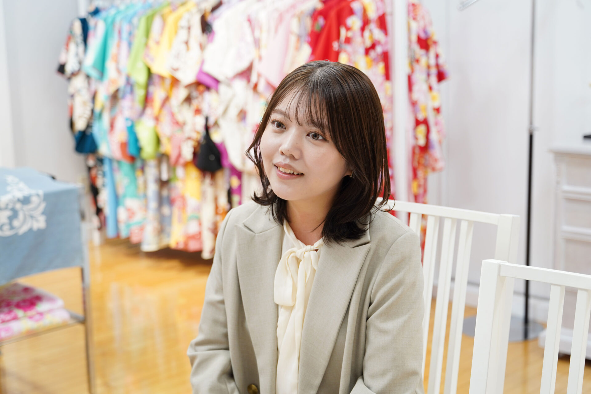 Topics&News トピックス&ニュース Photo Wedding Momona.Yokohama,Kawasaki,Kamakura HOME > トピックス&ニュース > フォトウェディングモモナのSNS担当者に聞いた、花嫁さまの心に寄り添う発信のかたち 2025.10.10 Topics インタビュー フォトウェディングモモナのSNS担当者に聞いた、花嫁さまの心に寄り添う発信のかたち 今回は、フォトウェディングモモナにてドレスコーディネーターとしてお客様の衣装選びをサポートしながら、SNS担当として情報発信の最前線も担っている深水に話を伺いました。 衣装合わせという“対面”の現場と、SNSという“発信”の場を行き来しながら、「ブライダルの魅力をもっと多くの人に届けたい」という想いのもと、日々活動を続けています。 人生の節目に寄り添うこの仕事に、どのような姿勢で向き合っているのか。そこにあるやりがいや、日々の試行錯誤、そしてこれから描く夢まで、率直に語ってもらいました。 【深水が担当しているSNSアカウントはこちら】 衣装や撮影の裏側、コーディネートの工夫など、日々の投稿をぜひチェック&フォローしてみてください! フォトウェディングMomona:Instagram フォトウェディングMomona:Tiktok ふりそでもりの:Instagram ふりそでもりの:Tiktok 目次始まりは姉の結婚式。憧れから始まったブライダルの道お客様からの「あなたで良かった」その一言を目指して。ドレスコーディネーターとしての1年間「SNSで業界を盛り上げたい」大学時代の思いが今につながる試行錯誤の毎日。SNS運用で大切にしていること大好きなブライダルを、もっと多くの人へ。SNSに込める想い支え合える仲間がいること、それが会社の最大の魅力 始まりは姉の結婚式。憧れから始まったブライダルの道 — なぜブライダル業界に興味を持たれたのか教えてください。 私がブライダル業界に興味を持ったきっかけは、大学生のときに参列した姉の結婚式でした。その時間がとても印象的で、自然と心を動かされたんです。 それまでの私は「接客が好き」という漠然とした気持ちはあったものの、特にやりたいことが見つからずにいました。そんな私が初めて「これをやりたい」と思える具体的な目標に出会えた瞬間でもありました。 就職活動を始めた頃、親からは「ブライダル業界は専門学校出身者が多いから、もっと幅広く業界を見てみたら?」とアドバイスを受けました。広報関係も視野に入れてみたものの、気持ちはブライダルに傾いていましたね。 業界をもっと知りたいと思い、大学3年生のときに結婚式場でのアルバイトにも挑戦しました。「向いてなかったらやめればいい」と軽い気持ちで始めたのですが、実際は想像以上に体力的に大変でした。 それでも、現場の雰囲気やお客様との関わりがすごく楽しくて。 結果的に、「自分にはこの仕事が合っている」と心から思えるようになりました。 現場で空気を肌で感じた経験は、今思えば大きな財産だったと思います。 このアルバイト経験を通じて、ブライダルの仕事に本気で進もうと決意しました。 当初はウェディングプランナーにも惹かれていたのですが、説明会で「一人のお客様と長く関われるのはドレスの仕事だよ」という言葉に出会い、その瞬間からドレスコーディネーターを目指すようになりました。 お客様からの「あなたで良かった」その一言を目指して。ドレスコーディネーターとしての1年間 — 入社当初の大変だった思い出はありますか。 モモナに入社し、ドレスコーディネーターとして歩み始めた当初、待っていたのは入社からわずか1ヶ月での独り立ちという、想像以上に厳しい研修でした。 最初の頃は、自分にとっては常識と思っていたことがお客様には伝わらなかったり、ご要望に応えきれずにご迷惑をおかけしてしまったりと苦戦した日々が多かったように感じます。 でも、そのひとつひとつの経験を糧に、少しずつではありますが、お客様一人ひとりに合わせた対応ができるようになりました。ようやく自分なりの接客スタイルを築くことができてきたと感じています。 特に和装の着付けは大きな壁でしたが、毎朝練習を重ねることで技術を身につけました。 心が折れそうな時期もありましたが、同期のメンバーや先輩から励ましの言葉をいただけたことが大きな力になっていると感じています。 そうした成長の先に、お客様からいただく「あなたに接客してもらえて良かった」という言葉こそが、今の私の原動力になっています。 「SNSで業界を盛り上げたい」大学時代の思いが今につながる — SNS担当者になったきっかけを教えてください。 大学時代の卒業論文では、「結婚式を挙げる人が減っている現状に対して、SNSでの発信が業界の発展につながるのではないか」というテーマを研究しました。もともと広報にも関心があったので、ブライダルと広報を掛け合わせた仕事には以前から強い興味を持っていたんです。 そんな中で社内にSNS担当の公募が出て、「これはチャンスだ」と思い、すぐに手を挙げました。社