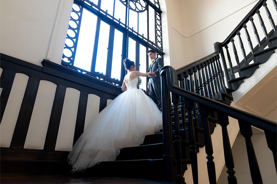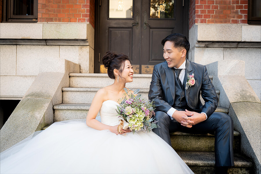 Topics&News トピックス&ニュース Photo Wedding Momona.Yokohama,Kawasaki,Kamakura HOME > トピックス&ニュース > 横浜市開港記念会館で叶える、格式あるロケーションフォト 2026.03.19 フォトウェディングの基礎知識 #結婚準備 #結婚が決まったら#フォトウェディングの費用#フォトウェディングの準備#ドレスで洋装フォトウェディング#ロケーションフォトウェディング 横浜市開港記念会館で叶える、格式あるロケーションフォト 横浜市中区に位置する 横浜市開港記念会館 は、大正時代の洋風建築を今に伝える歴史的建造物です。 赤いレンガ色の外観、優美なカーブを描くアーチ、精緻な装飾が施されたファサード。どこから見ても存在感のある建築美は、時間とともに積み重ねられた歴史の重みを感じさせます。 そんな開港記念会館は、クラシカルな写真を残せるロケーションフォトスポットとして人気を集めています。 単なる背景という領域にとどまらず、歴史的な佇まいと時間の流れを写真に写し込むロケーションとして、フォトウェディングにふさわしい気品と奥行きを与えてくれます。 本記事では、横浜市開港記念会館の魅力と、その風景を活かしたロケーションフォトの楽しみ方についてご紹介します。 目次歴史的建築が醸し出す「重厚感」と「気品」写真に残る奥行きと構図の多様性歴史的背景とランドマーク性が生む写真価値横浜市開港記念会館でロケーションフォトを行う際の注意点横浜市開港記念会館の撮影事例横浜・神奈川県のウェディングフォトならフォトウェディングモモナ 歴史的建築が醸し出す「重厚感」と「気品」 横浜市開港記念会館は、1924年に竣工した洋風建築で、歴史的な価値と美しさを併せ持つランドマークとして横浜市民に親しまれてきました。 重厚感のある外観はクラシックなムードを纏い、時代を超えて受け継がれてきた気品を感じさせます。その佇まい自体が写真に説得力を与え、特別な一日を記録する舞台としてふさわしい存在感を放ちます。 建築が持つクラシカルな美しさは、ウェディングドレスのシルエットや質感を自然に引き立てます。光と陰影が重なり合うことで、まるで映画のワンシーンのような印象的な一枚が生まれるのも、このロケーションならでは。 歴史ある建物を背景にしたポートレートは、単なる風景写真とは異なり、「節目の一日」を象徴するフォトとして深く印象に残ります。 横浜という都市が歩んできた歴史や文化を感じながら撮影できる点も、横浜市開港記念会館ならではの大きな魅力と言えるでしょう。 写真に残る奥行きと構図の多様性 開港記念会館の周辺は、建築のパーツを活かしたドラマチックな構図が作りやすいのも魅力です。 重厚な柱やアーチをフレームに見立てたポートレート、窓越しに捉える柔らかな光、石畳と建物のコントラスト。これらは、単純な背景だけではなく、写真に奥行きと深みを生み出します。 時間帯によって変わる光の方向や影の表情も、撮影のバリエーションを広げてくれる点も魅力のひとつ。午前〜午後の自然光が柔らかく回る時間帯を選べば、背景の建築と人物が調和した上品な一枚に仕上がります。 撮影シーンの組み合わせとしては、正面の外観を主役にしたフォーマルなカットに加えて、柱沿いや階段周りを活かしたナチュラルで動きのある写真もおすすめです。 歴史的背景とランドマーク性が生む写真価値 横浜市開港記念会館は、単なる撮影背景ではありません。 元来は市民のための記念館として建てられ、横浜の港が開かれた歴史を象徴する建物です。その存在感は、写真に写るだけではなく、おふたりの記念日と時間をつなぐ価値そのものにも寄与します。 歴史の中で人々が行き交ってきた場所で写真を残すことは、時間を超えて語り継がれるロケーションフォトになるという意味で、写真に奥行きと物語性を与えます。 横浜市開港記念会館でロケーションフォトを行う際の注意点 横浜市開港記念会館でのロケーションフォトは主に屋内での撮影となるため、天候は特別気にする必要はありません。 撮影する場合の施設の使用料は、フォトウェディングの撮影プラン料金に別途5,000円(税込)かかります。 また、撮影できるタイミングは平日・土日どちらも可能ですが、施設が休館日の場合は不可となります。 詳しい情報は、横浜市開港記念会館のサイトをご確認ください。 撮影可能な時間帯は、 9:00~12:00 13:00~15:00 16:00~18:00 の3部制となります。なお、撮影時間は約1時間30分を想定しており、無理のないスケジュールで進めていきます。 横浜市開港記念会館の撮影事例 開港記念会館で撮影した実際のフォトウェディング事例を通して、このロケーションならではの雰囲気や空気感を感じてみてください。 横浜・神奈川県のウェディングフォトならフォトウェディングモモナ 創業70年以上の歴史を持ち、神奈川県最大級のドレスコレクションを誇る「モリノブライズグループ」から誕生したフォトウェディングブラン
