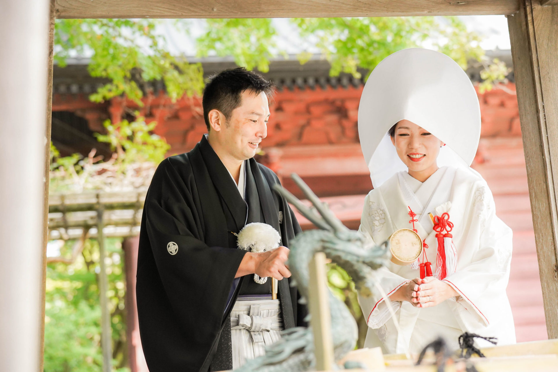 Topics&News トピックス&ニュース Photo Wedding Momona.Yokohama,Kawasaki,Kamakura HOME > トピックス&ニュース > 白無垢の失敗談から学ぶ 後悔しないために知っておきたい注意点と対策 2026.01.12 update 2026.01.03 Topics #フォトウェディングの準備#着物で和装フォトウェディング 白無垢の失敗談から学ぶ 後悔しないために知っておきたい注意点と対策 白無垢は、日本の婚礼衣装の中でも特別な存在であり、「一生に一度だからこそ、後悔したくない」という気持ちが強く働きやすい衣装です。 一方で、インターネット上には「似合わなかった」「老けて見えた」「写真写りが残念だった」といった声も見られ、不安を感じる方も多いのではないでしょうか。 ただ、そうした失敗談の多くは、白無垢そのものが原因ではありません。事前に知っておくことで防げるポイントや、調整できる部分を見落としていたケースがほとんどです。 今回は、白無垢で「失敗した」と感じやすい理由を整理しながら、後悔を防ぐための考え方と具体的な対策を、わかりやすく解説していきます。 目次白無垢が似合わないと感じてしまう理由よくある白無垢の失敗談とその原因白に顔が負けてしまった老けて見えた・地味に感じたヘアメイクが合わなかった綿帽子・角隠しで違和感が出た写真写りで後悔した白無垢の失敗を防ぐための事前準備白無垢選びで印象を左右する要素当日後悔しないために知っておきたいこと白無垢の失敗談からわかる大切なこと横浜・神奈川県のウェディングフォトならフォトウェディングモモナ 白無垢が似合わないと感じてしまう理由 白無垢は、洋装のドレスと比べると、色やデザインの違いが少なく見える衣装です。そのため一見すると、どれを選んでも同じように思えるかもしれません。 しかし実際には、衿元の開き具合や掛下・小物の色味、ヘアメイクのバランス、さらには光の当たり方によって、印象は大きく変わります。 特に白という色は、光を強く反射しやすく、写真写りや肌の見え方に影響を与えます。そのため、ほんの少しの調整の違いが、仕上がり全体の印象を大きく左右します。「少しの違い」が、「思っていたのと違う」という結果につながりやすい衣装なのです。 白無垢の失敗談で多く見られるのが、「自分には似合わなかった」という声です。ただ、その多くは本当に似合わなかったわけではありません。衿元やメイク、小物などの調整が十分に行われていなかったことで、本来の魅力が引き出しきれていなかったケースがほとんどです。 白無垢は、着る人に合わせて整えることで完成する衣装です。最初から「似合わない」と決めつけてしまうと、本来できたはずの調整や工夫に気づきにくくなってしまいます。 大切なのは、違和感の原因をひとつずつ確認しながら、自分に合う形へ近づけていくことです。 よくある白無垢の失敗談とその原因 白に顔が負けてしまった 白無垢の失敗談として多く聞かれるのが、「顔がぼやけて見えた」「血色がなく、元気がない印象になった」という声です。これは、白無垢の白さに対して、メイクの血色感や顔の輪郭が十分に引き出されていなかったことが原因である場合が多くあります。 白無垢は全身が白で覆われるため、顔まわりに視線が集まりやすくなります。その分、肌の色味や眉・目元・口元の印象が弱いと、顔が白に埋もれてしまったように見えてしまいます。 普段の生活では自然に見えるナチュラルメイクも、白無垢の強い白の前では、表情がぼんやりと映ってしまうことがあります。これは「濃すぎた」「派手だった」という失敗ではなく、白無垢という衣装に対して、メイクのバランスが合っていなかったことによるものです。 大切なのは、普段より少しだけ血色感や立体感を意識し、白無垢の白さに負けない顔立ちに整えることです。 老けて見えた・地味に感じた 白無垢は、もともと格式の高い婚礼衣装です。そのため、全体のバランスをうまく整えないと、落ち着きすぎて重たい印象になってしまうことがあります。 特に多いのが、衿元が詰まりすぎているケースです。首元に抜け感がないと、表情までかたく見えやすく、実年齢よりも大人びた印象になってしまうことがあります。また、掛下や小物をすべて白系でまとめてしまうと、全体にメリハリが出にくく、「思っていたより地味だった」と感じやすくなります。 「地味に見えた」という感想の背景には、派手さが足りないというよりも、色味や立体感が不足していたという理由が隠れていることが少なくありません。衿元の抜き方や、掛下・小物の色の入れ方を工夫することで、白無垢の上品さを保ったまま、表情のある印象に整えることができます。 ヘアメイクが合わなかった 白無垢のヘアメイクは、洋装のドレスとは考え方が少し異なります。普段通りのナチュラルメイクでは、白無垢の強い白に顔立ちが負けてしまい、表情がぼんやり見えてしまうことがあります。一方で、色味や