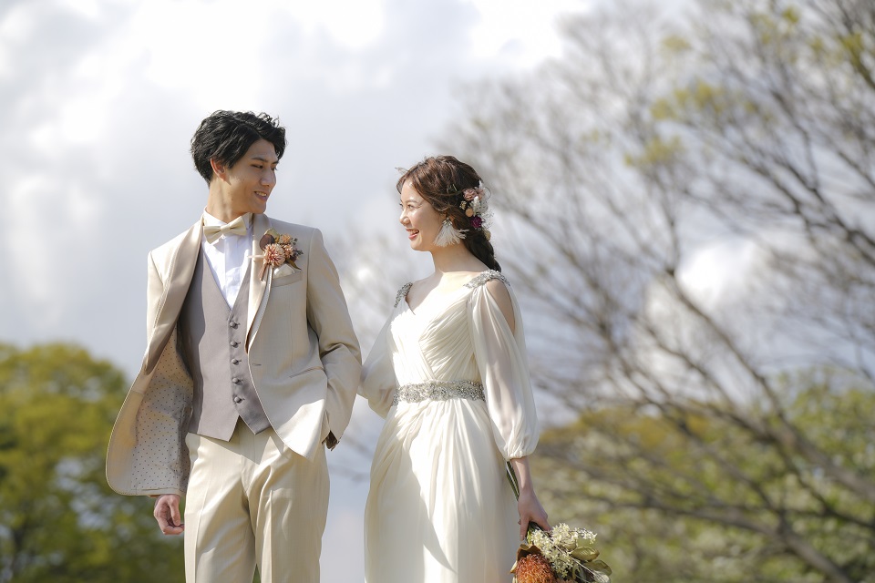 Topics&News トピックス&ニュース Photo Wedding Momona.Yokohama,Kawasaki,Kamakura HOME > トピックス&ニュース > 結婚記念日は、これまでのふたりとこれからのふたりが重なる日 2025.12.08 update 2025.12.07 Topics #結婚準備 #結婚が決まったら#フォトウェディングの準備 結婚記念日は、これまでのふたりとこれからのふたりが重なる日 結婚記念日は、夫婦にとって特別な節目のひとつです。 忙しい毎日の中で、あらためて「一緒に歩んできた道」を振り返り、これからの未来に想いを寄せられる時間でもあります。 そんな結婚記念日に、写真という形で想いを残すカップルが増えています。 今回は、結婚記念日に写真を撮る意味から、おすすめの撮影アイデア、服装、ロケーションについて紹介します。 目次結婚記念日に写真を残すということ結婚記念日フォトが選ばれている理由時間が経つほど深まる、記念写真の不思議な力記念年ごとの意味と、写真に込める想い記念年ごとに紡ぐ、ふたりのための撮影アイデア1周年(紙婚式):新婚の“いま”を残す5周年(木婚式):根を張りはじめた夫婦の時間を写す10周年(錫婚式):あの日の想いを今のふたりで纏う記念写真25周年(銀婚式):家族の歩みと重ねる節目の一枚撮影スタイルとロケーションで紡ぐ、ふたりらしい記念日のかたち落ち着いた空気で上質な一枚を残す、スタジオ撮影自然体のふたりを切り取る、ロケーション撮影ふたりの関係性を映す、記念日の装いドレス&スーツで残す、節目の特別感カジュアルコーデで、等身大のふたりを残すさりげないリンクコーデでつくる、統一感のある一枚節目の記念日らしい格式と美しさを演出する和装スタイル記念日フォトをもっと素敵に。自然体を引き出す構図ふたりの距離感がそのまま残る“歩きショット”想いがにじむ、やわらかな見つめ合いの一枚未来へ向かうふたりを写す、後ろ姿のポートレート子どもやペットと残す、家族写真としての一枚指輪やブーケで思い出を添える一枚横浜・神奈川県のウェディングフォトならフォトウェディングモモナ 結婚記念日に写真を残すということ 結婚記念日フォトが選ばれている理由 近年、夫婦で結婚記念日に写真を撮る「アニバーサリーフォト」が広がりつつあります。節目の年に夫婦の姿をしっかり残しておきたいという思いが、その背景にある大きな理由です。 たとえば、子どもが生まれる前に「夫婦だけの時間」を記録しておきたいという声があります。また、子育てがひと段落して、改めてふたりの姿を撮影したいというケースも増えています。 結婚式を挙げなかった方が、記念としてウェディングドレスを着て写真を残すことも珍しくありません。さらに、10周年や25周年といった節目を祝い直すアニバーサリー婚の一環として利用されることもあります。 結婚式のように大がかりな準備や演出を必要としない分、ふたりの日常の空気感をそのまま写真に閉じ込められることも魅力のひとつです。 背伸びしすぎず、自然な表情や距離感をそのまま残せる。だからこそ、アニバーサリーフォトは多くの夫婦にとって自分たちらしい記念日の形として選ばれているのです。 時間が経つほど深まる、記念写真の不思議な力 写真には、当たり前のように流れていく毎日をそっと留め、未来の自分たちへ届けてくれる力があります。 結婚記念日の写真は、不思議なもので撮ったその日よりも、年月を重ねた後のほうが、ずっと大きな価値を持つようになります。 振り返るたびに、写っているのはもう戻らない時間。その一瞬に触れられる唯一の手段が、写真という存在です。 結婚記念日フォトは、ふたりの歩みを惜しみなく祝福し、未来へ届けてくれる小さなタイムカプセルのようなもの。撮った瞬間より、未来のおふたりに寄り添うために残される記録なのです。 記念年ごとの意味と、写真に込める想い 結婚記念日には、実は年数ごとに名前と意味があることをご存じでしょうか。 1周年の「紙婚式」は、まっさらな紙のように、これからふたりで人生を描いていく始まりの象徴。5周年の「木婚式」は、小さな木が根を張り、しっかりと成長していく姿になぞらえた節目です。 10周年は「錫婚式」。錫のように強く、美しく、しなやかに続く関係を願う意味があります。そして25周年は「銀婚式」。互いを深く尊敬し合い、豊かな時間を積み重ねてきた夫婦に贈られる名称です。 最近は、こうした記念年の象徴を写真に取り入れるご夫婦も増えています。 1周年なら、リンクコーデでのさりげない日常フォト。5周年は、思い出の旅行先でのロケーション撮影。 10周年には、結婚式で着たドレスをもう一度纏い、改めてふたりの軌跡を刻む写真を。25周年は、家族全員での集合写真を撮り、歩んできた年月の豊かさをかたちに残すご夫婦も多いです。 節目に合わせた写真は、単なる記念ではなく、夫婦の物語そのもの。歳月を重ねるほどに深みを増し、未来の自分たちへ温かなメッセージを届けてくれます。 記念年ご